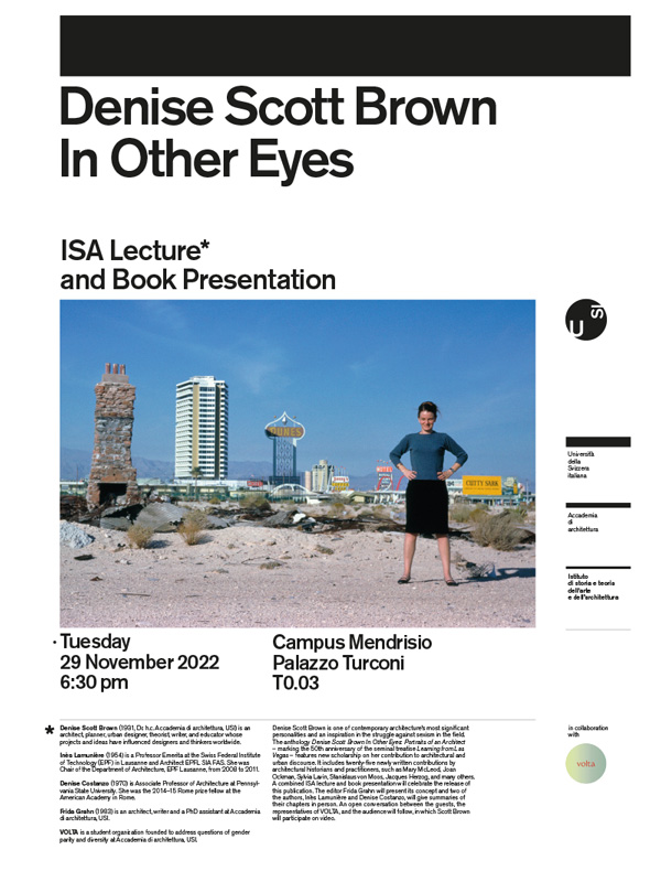 A l’occasion du 50e anniversaire de Learning from Las Vegas, une conférence SIA et la présentation de l’anthologie "Denise Scott Brown In Other Eyes" auront lieu à l’Accademia di architettura di Mendrisio.
