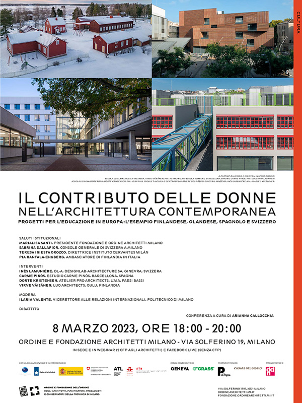 Inès Lamunière présente le projet de rénovation de "Pâquis Centre", un projet exemplaire pour la Ville de Genève, réalisé entre 1965 et 1975 par l'architecte Jean-Jacques Oberson. Elle sera accompagnée par les architectes Carme Pinós, Dorte Kristensen et Virve Väisanen. Cette initiative est organisée par la Fondazione dell'Ordine degli Architetti P.P.C della Provincia di Milano.