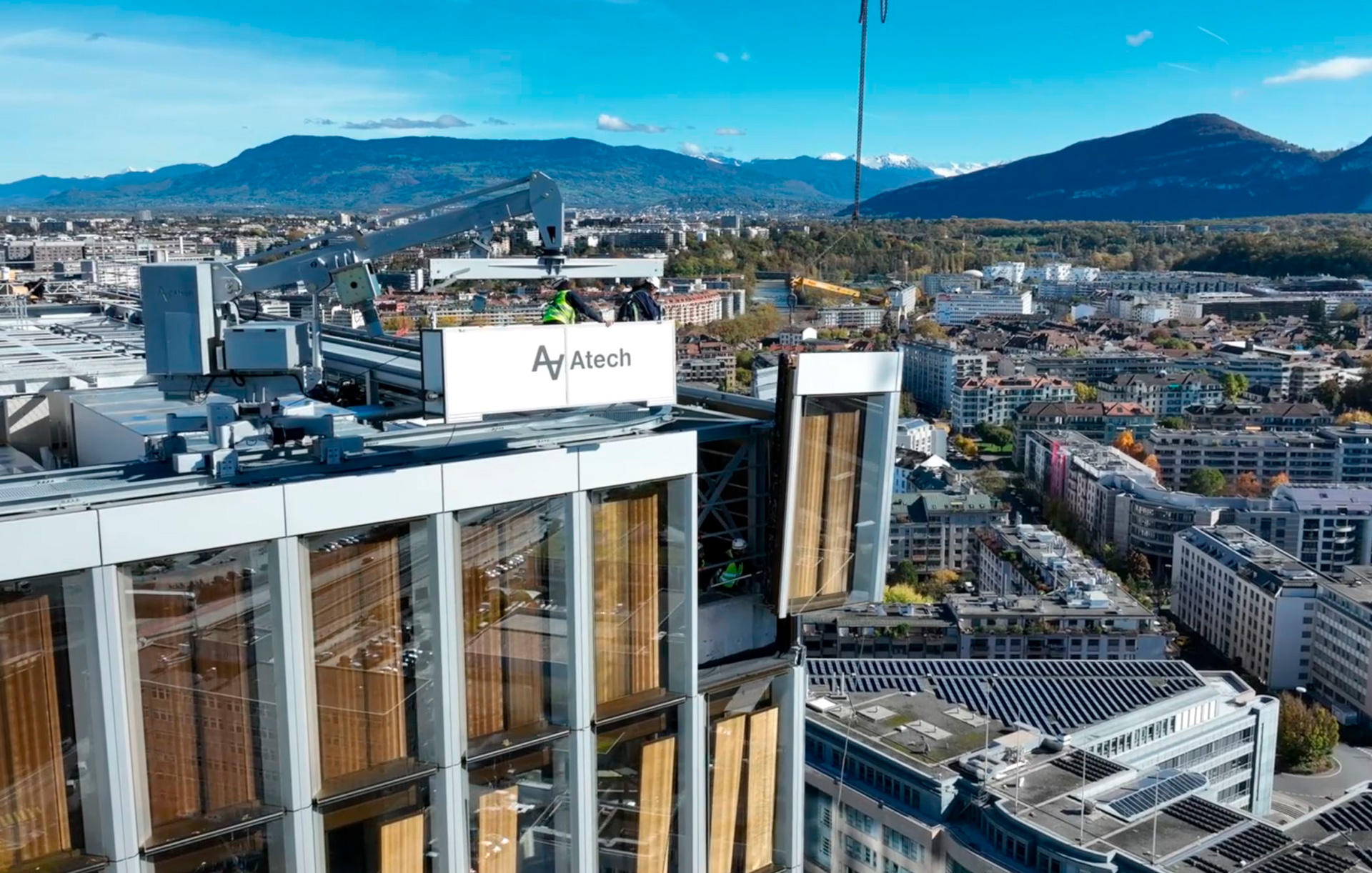 Ce 28 octobre 2025, le dernier élément composant la façade, un module de 1,5 tonne et plus de 4 mètres de haut, a été posé en quelques minutes seulement. Préfabriquée dans l’usine Fahrni à Lyss (BE) et acheminée à Genève par convoi spécial, cette façade marque une étape importante : le premier bâtiment de grande hauteur réalisé à Genève sans échafaudage.