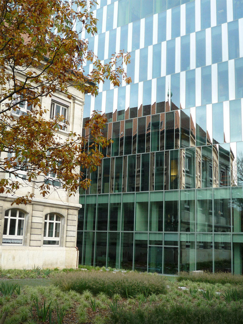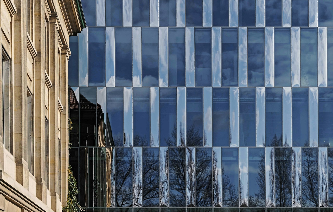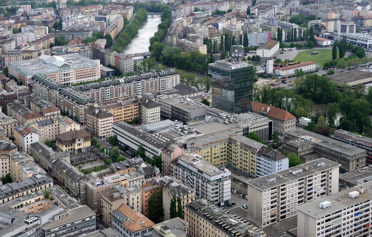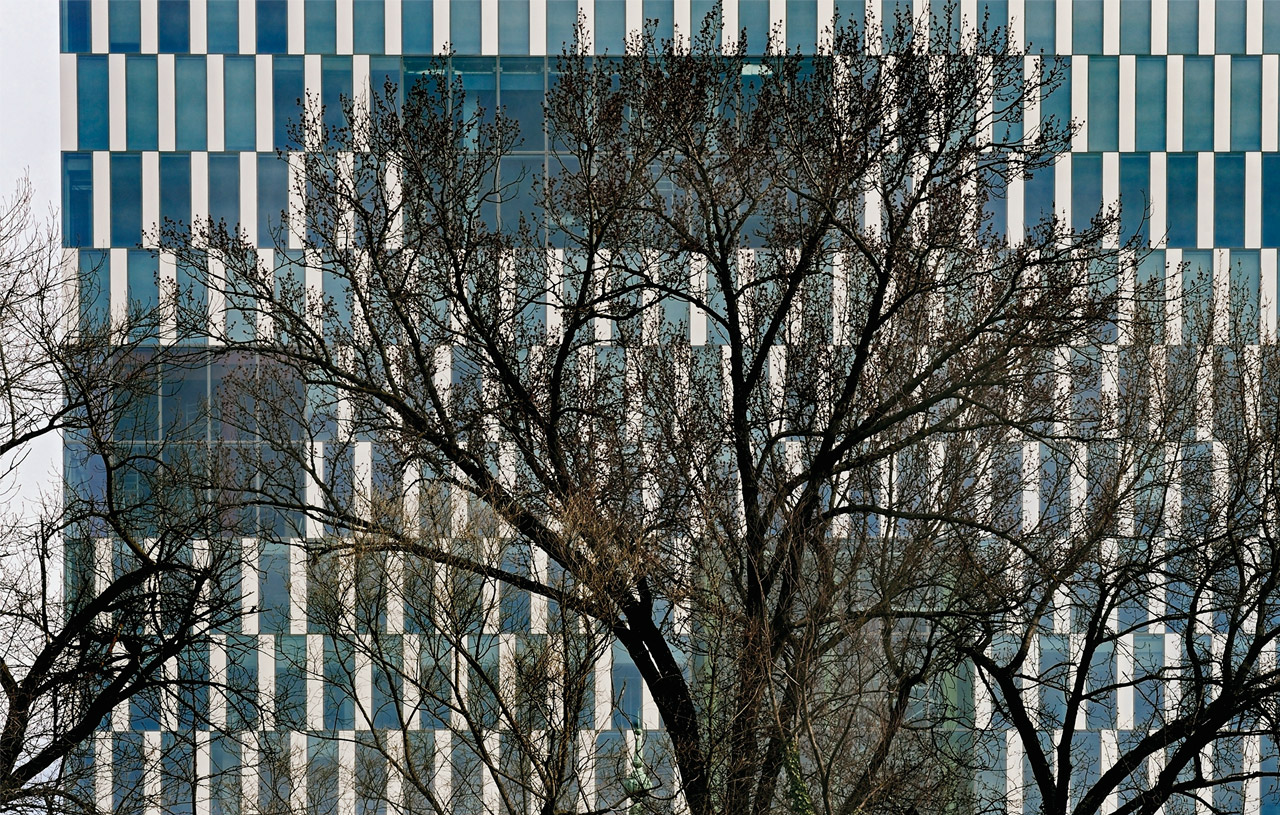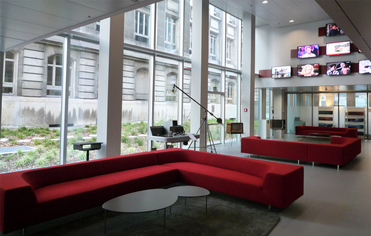 L’ancienne tour érigée par Arthur Bugna en 1973 était frappée d’obsolescence. Le projet pour la nouvelle tour a consisté en une mise à nu de l’ossature béton et à une redéfinition complète de son architecture. Il s’est agi de concevoir une organisation spatiale et une image contemporaine qui répondent au changement de culture de l’entreprise de service public qu’est la Radio Télévision Suisse (RTS). Les aménagements des espaces de travail des 800 collaborateurs sont réorganisés sur de larges plateaux parfois ouverts sur des espaces sur double ou triple hauteur. Ces atriums permettent la rencontre informelle d’équipes tout comme l’enregistrement d’émissions. Ouverts sur l’Arve et le quartier des Vernets, ils se transforment, le soir en vitrine d’une activité toujours palpitante et à l’écoute du monde. Du côté ville et paysage lémanique, c’est un espace en porte à faux, au sommet de la tour qui couronne l’édifice. Dévolu aux réunions plus importantes et parfois festives, la grande fenêtre qui le caractérise donne sur le panorama et le met en toile de fond des enregistrements d’interviews réalisés en prime time. Enfin, la façade est composée sur une trame de 155cm dont le rythme géométrique se joue d’une pixellisation et d’effets optiques particuliers. Le volume de la tour avec ses panneaux de verre et d’acier poli miroir reflète son environnement et le climat qui l’entoure, les nuages, la pluie, le bleu du ciel. Une image toujours changeante pour une tour emblématique dans le skyline genevois.