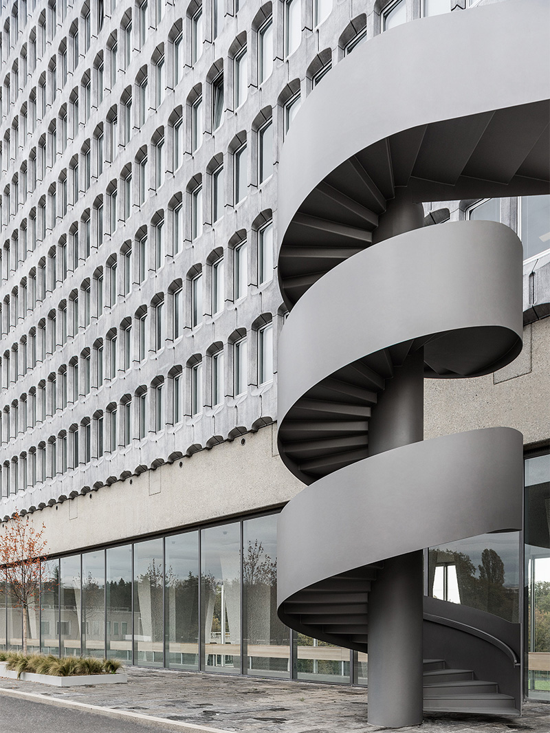 Réalisé par Eugène Beaudoin, Pier Luigi Nervi et Alberto Camenzind, entré en fonction en 1974, le siège de l'organisation internationale du Travail fait l’objet d’un projet de rénovation complète. L’entreprise Steiner AG a confié à dl-a la direction des plans, le suivi architectural du chantier et le projet et la réalisation des 2 nouveaux escaliers de la façade principale.